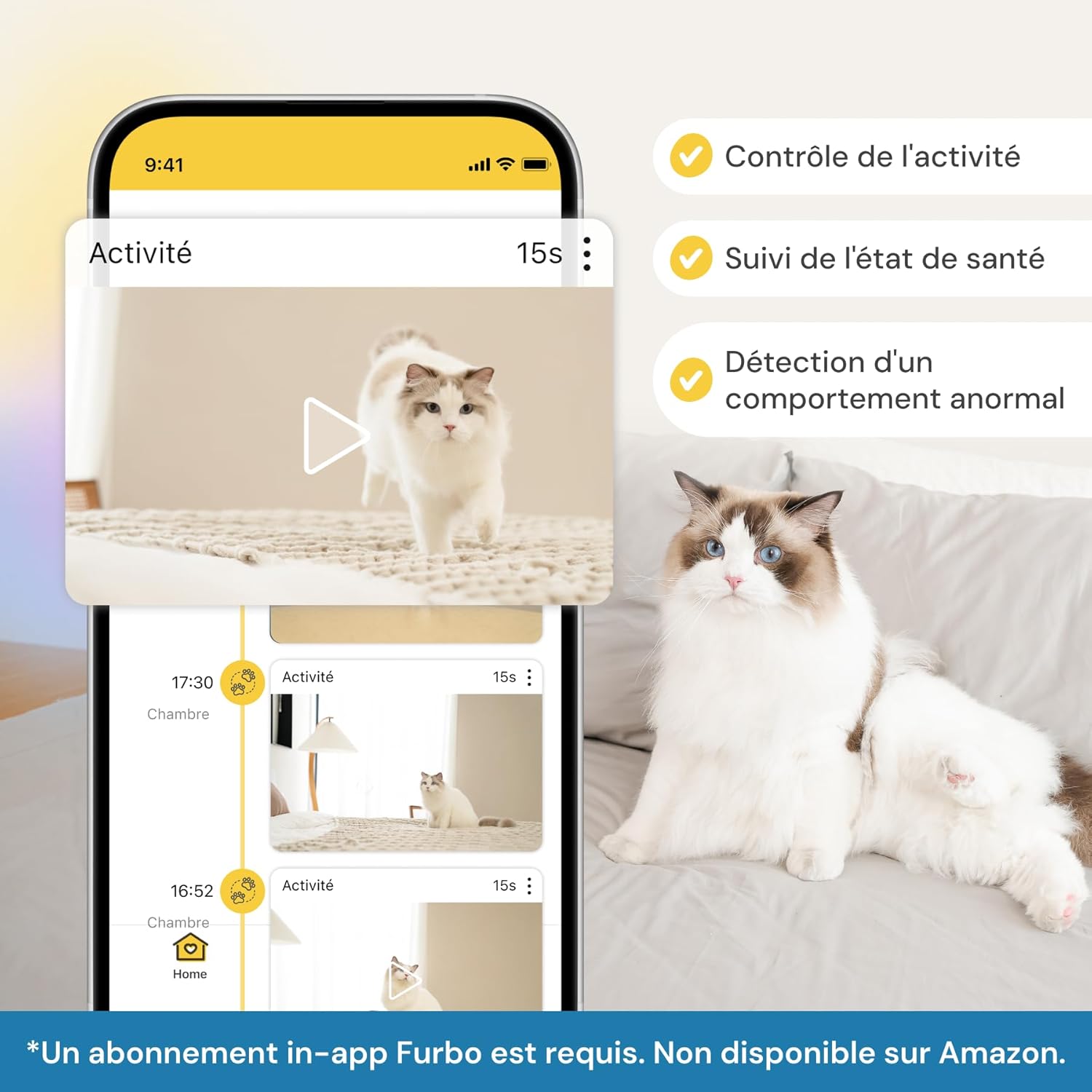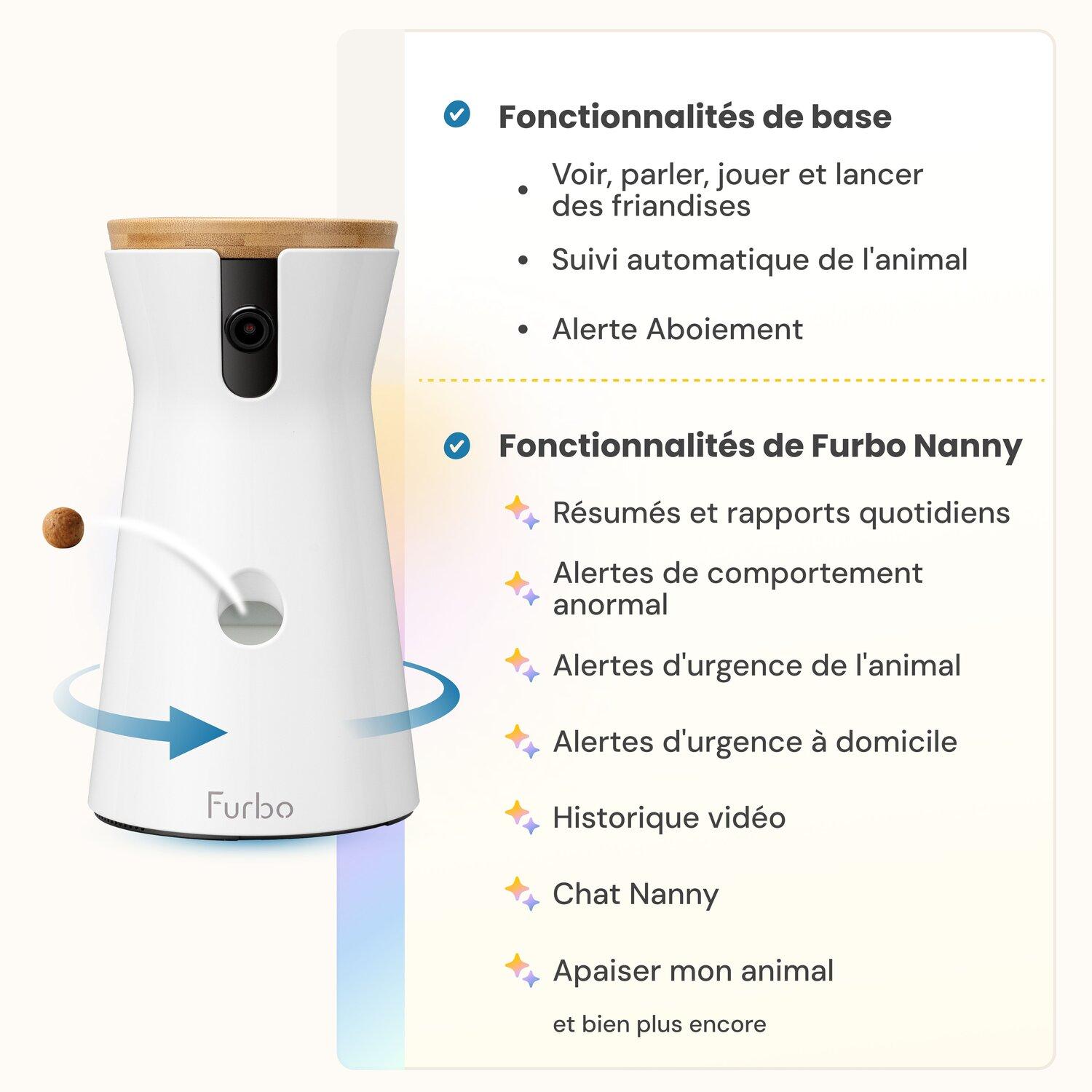 Oui, mais les fonctionnalités sont limitées. Sans l'abonnement Furbo Nanny, vous avez accès au flux vidéo en direct, à l'audio bidirectionnel et au lancer de croquettes manuel. En revanche, vous perdez l'historique vidéo (cloud), les alertes intelligentes de sécurité (fumée, selfies d'animaux) et les résumés quotidiens.