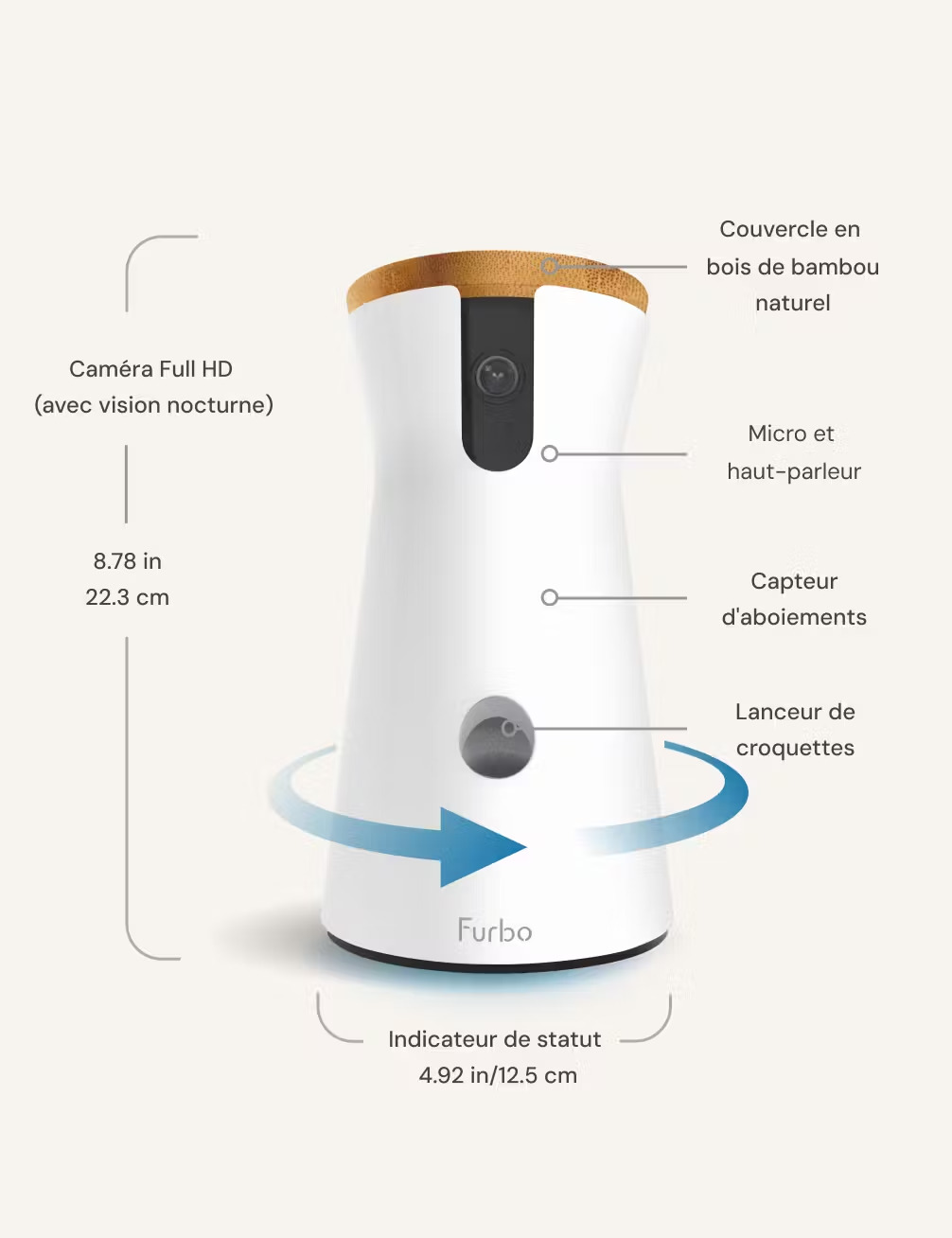 La Furbo 360° est bien plus qu’une caméra : c’est un totem interactif conçu pour rompre la solitude de vos compagnons. Entre son lanceur de croquettes iconique et sa vue panoramique, elle s’impose comme la référence du marché « Pet-Tech ».
