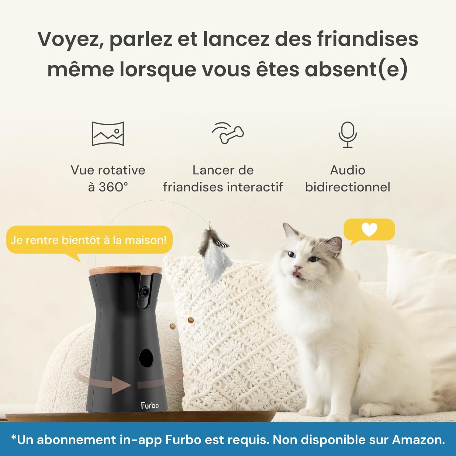 La force de la Furbo réside dans son distributeur de friandises intégré. D’un simple geste sur votre smartphone, la caméra projette une croquette dans la pièce. C’est l’outil parfait pour créer une association positive avec votre absence ou simplement récompenser un bon comportement à distance.